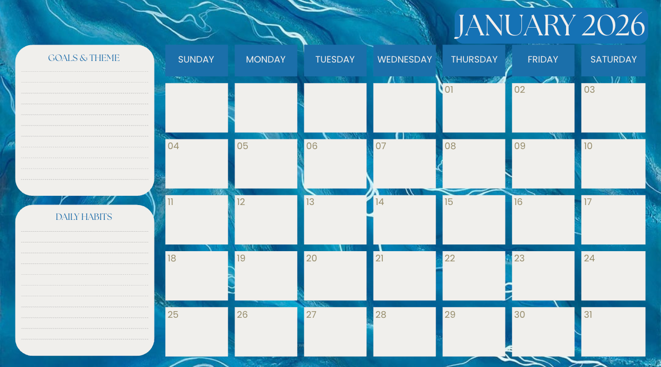 Printable Art Calendar for 2026: Set your intentions & plan for the year ahead